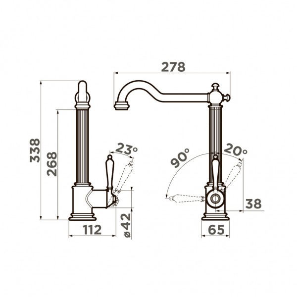 Высота излива 33.8