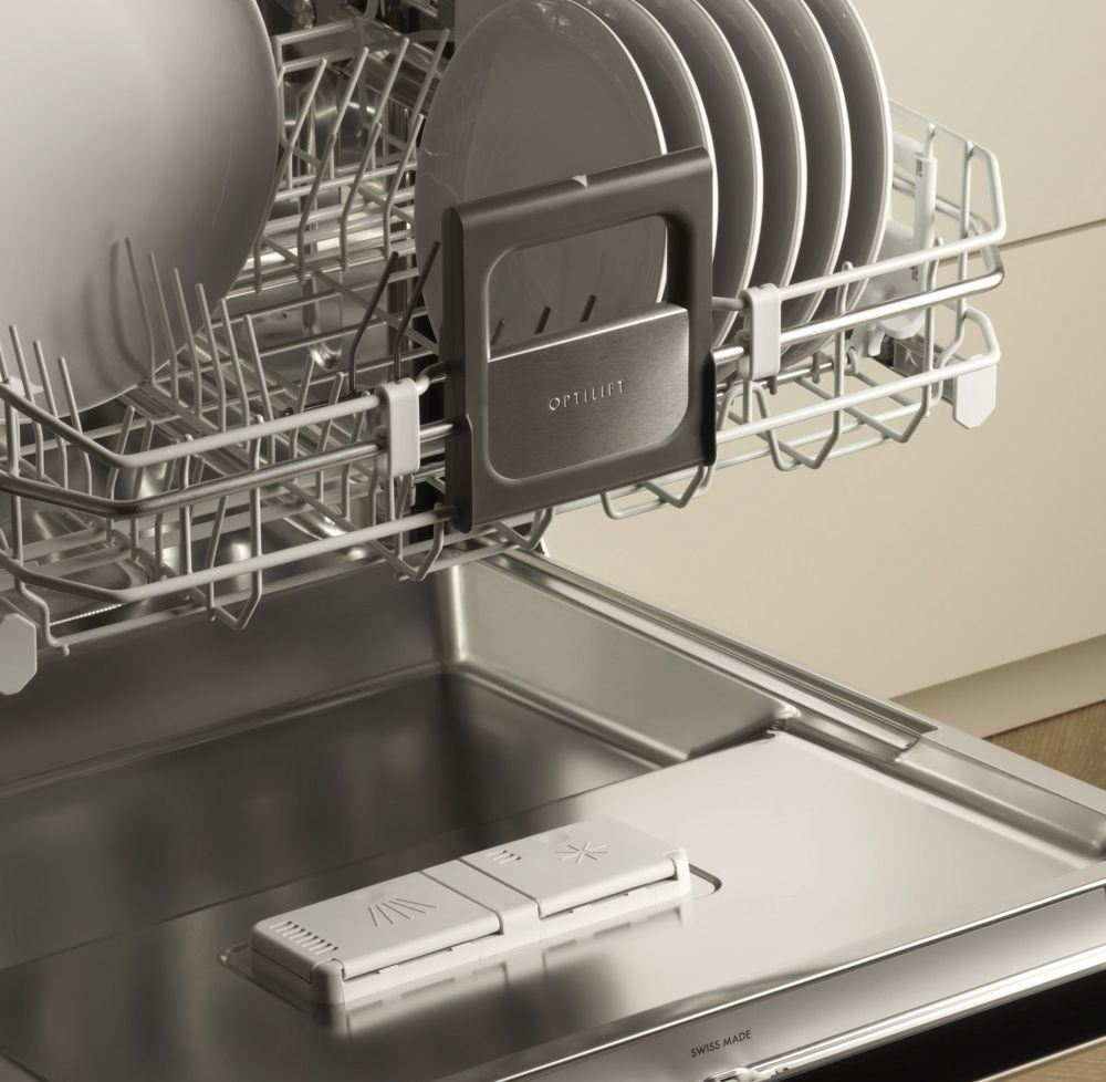 Конструкция посудомоечных машин V-ZUG обеспечивает максимально эргономичный процесс мойки. Уникальная система дверных петель позволяет гармонично встроить посудомоечную машину в кухонный шкаф, независимо от высоты. Посудомоечные машины с функцией OptiLift имеют дополнительный механизм, позволяющий поднимать нижний лоток до уровня верхнего лотка. Это избавляет вас от необходимости наклоняться при загрузке и выгрузке посуды.