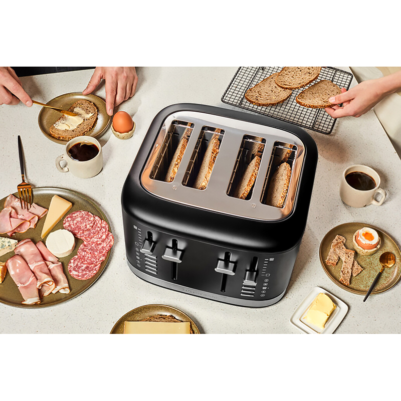 4 сверхшироких отверстия для тостов, ручной рычаг высокого подъема, металлический корпус обеспечивает долговечность и надежность |