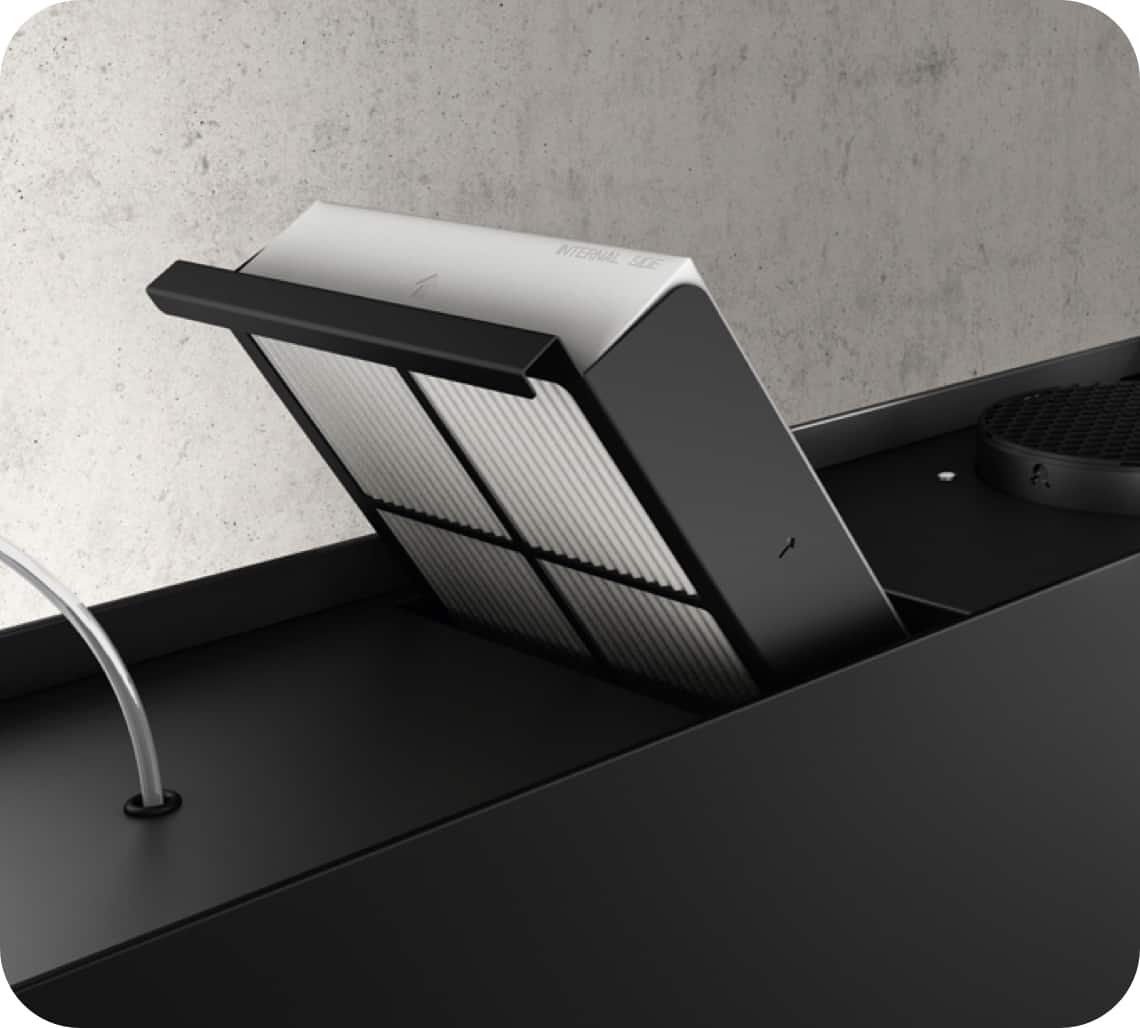 Вытяжка и очиститель воздуха в одном продукте, который заботится о чистоте воздуха в вашем доме на протяжении всего дня.