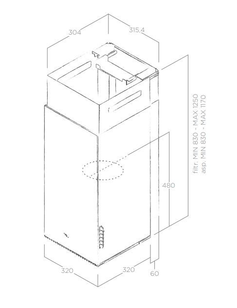 - Возможность установки, в вытяжной или фильтрующей версии, без верхнего дымохода, при условии нахождения на высоте 680 мм