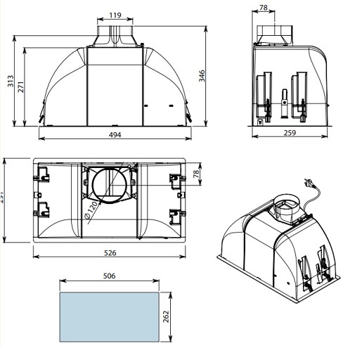 - Вытяжки встраиваемые и подвесные, шириной не более 60 см