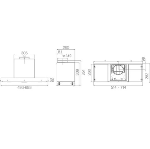 - Вытяжки встраиваемые и подвесные, шириной не более 60 см