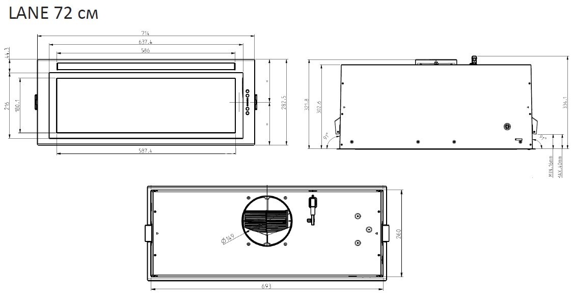 Вытяжка оснащена температурным сенсором, когда температура превышает безопасное значение, вытяжка переходит на 3-ю скорость и продолжает работать пока температура не упадёт.