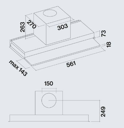 • Вытяжки встраиваемые и подвесные, шириной не более 60 см