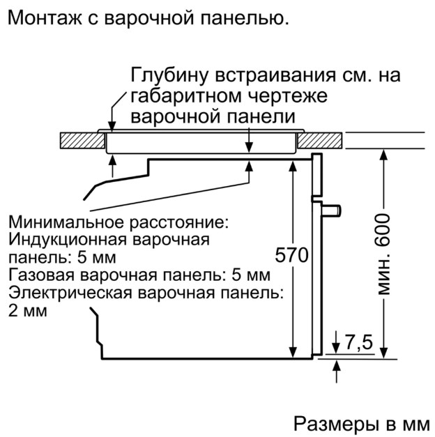 - Размеры ниши для встраивания (ВхШхГ): 585 мм - 595 мм x 560 мм - 568 мм x 550 мм