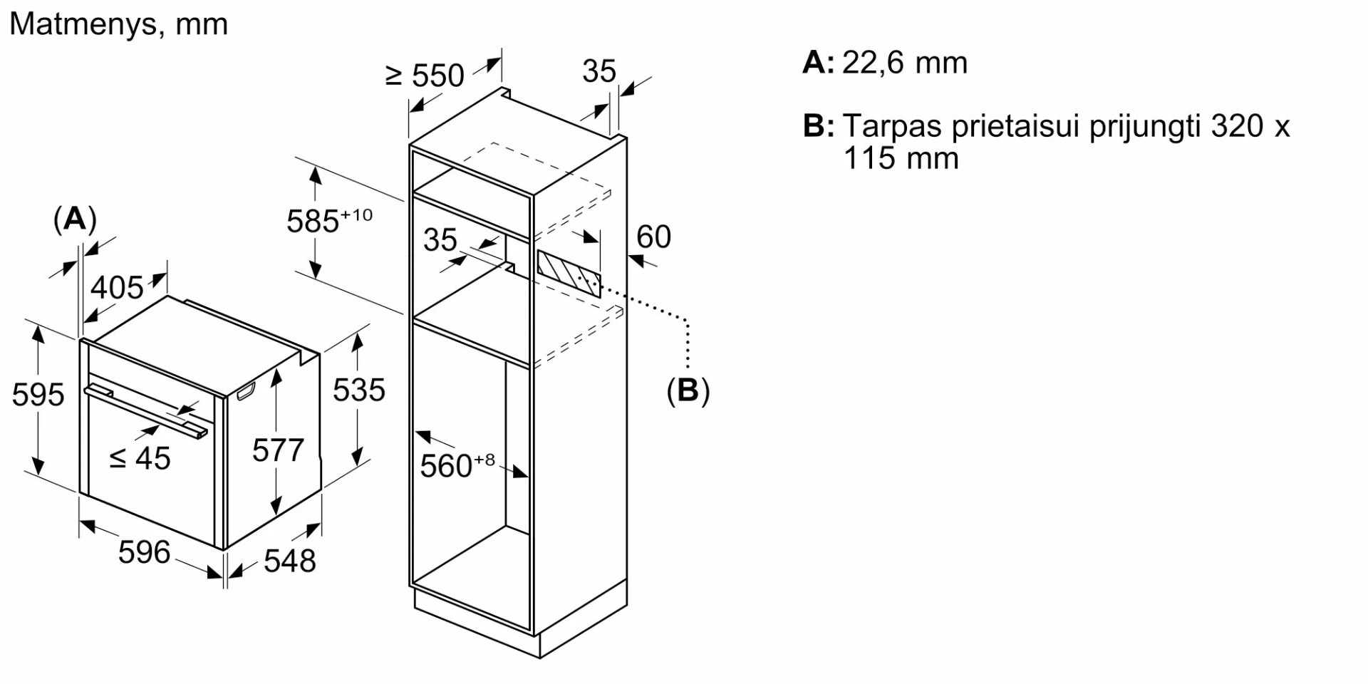 - Размеры ниши для встраивания, см (В х Ш х Г): 58.5-59.5 х 56-56.8 х 55