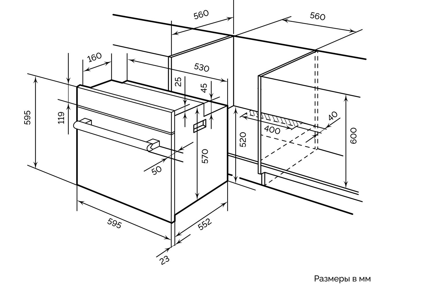 - Размер для встраивания (ВхШхГ): 600х560х560 мм
