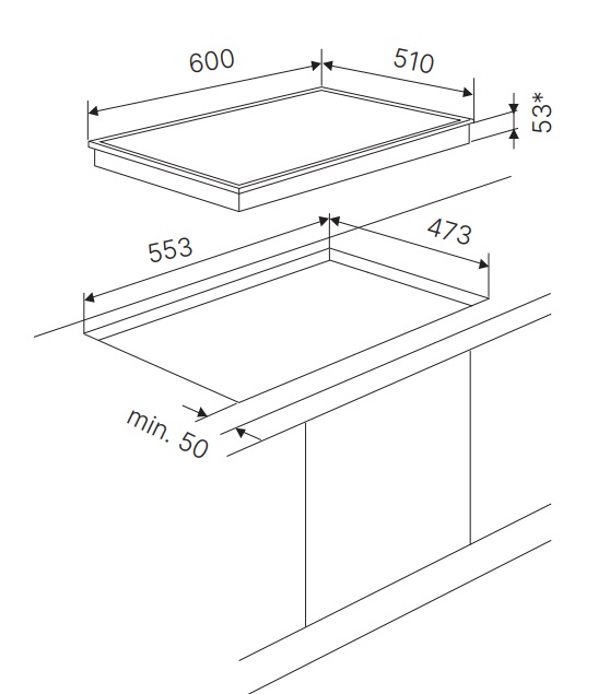 - В варочных панелях на скрытой части, которая находится под столешницей