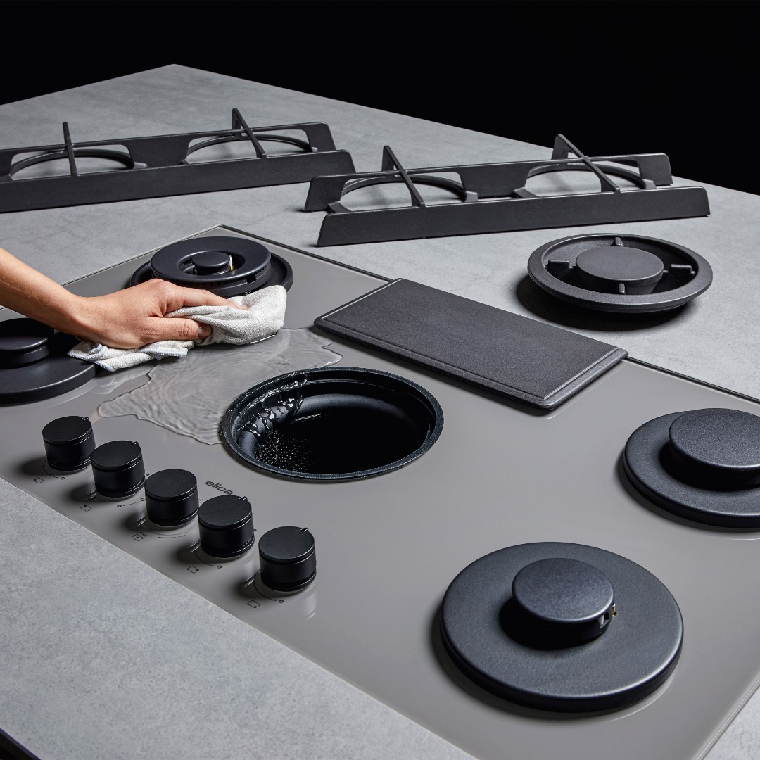 Чугунные элементы сочетают в себе эстетику и функциональность, а крестообразные, закрытые и плоские решетки гарантируют устойчивость кастрюль и сковородок, обеспечивая удобство их перемещения по всей варочной поверхности. Чугунная крышка зоны фильтрации становится оригинальной опорой, опциональная подставка для вока расширяет возможности вариаций приготовления. Встроенная вытяжка очищает воздух от дыма и неприятных запахов автоматически, благодаря комбинированному фильтру для жира, запаха и влаги, обеспечивающему максимальную эффективность и простоту обслуживания.