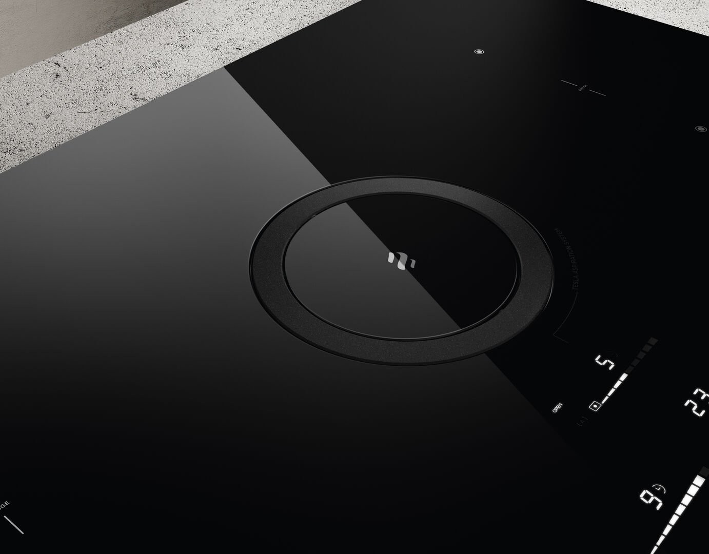 Индукционная варочная панель Elica NIKOLATESLA SWITCH GLOW BL/A/83 и Elica NIKOLATESLA SWITCH GLOW BL/F/83 могут монтироваться заподлицо с кухонной столешницей, создавая единое гладкое пространство. Декоративный элемент, закрывающий отверстие вытяжки также не выступает над поверхностью