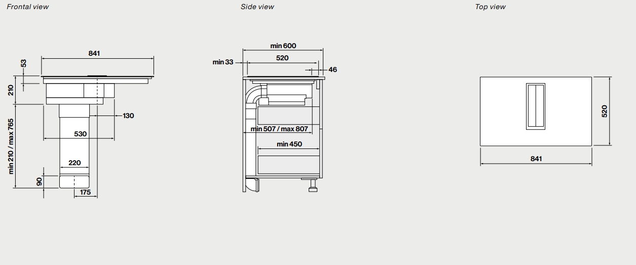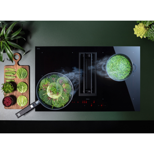 Особенности модели индукционная варочная панель с вытяжкой для режима отвода вохдуха, корпус из нержавеющей стали AISI 304, автоматическое открытие и закрытие всасывающих элементов, бесщеточный двигатель с 9 скоростями + режим Booster, функция Keep Warm (42/70/94 градуса), предупреждение о насыщении жирового фильтра, предупреждение о насыщении фильтра Carbon.Zeo, технология Flex Surface, класс энергоэффективности: A++