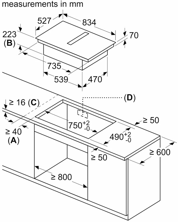 - В варочных панелях на скрытой части, которая находится под столешницей