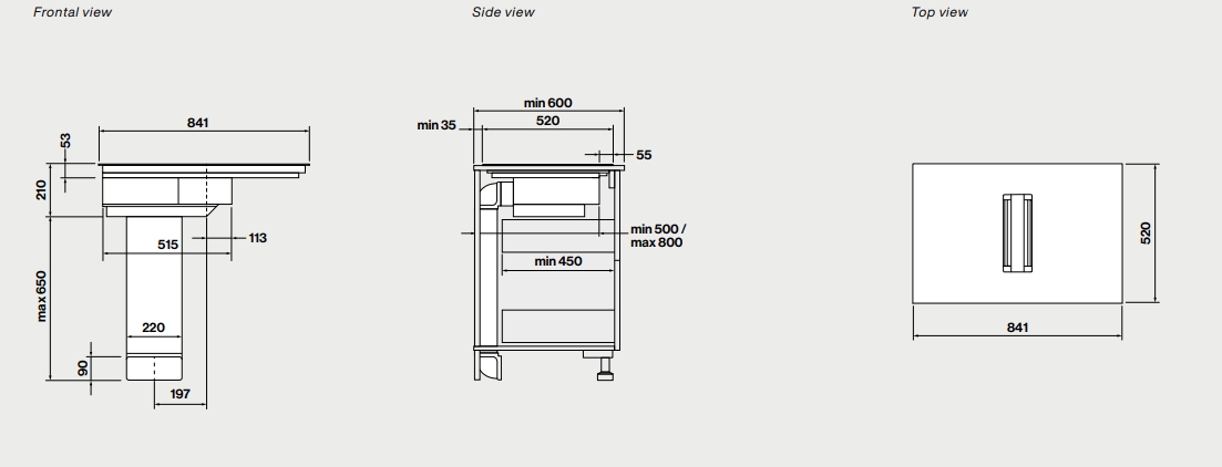 • Вытяжки встраиваемые и подвесные, шириной не более 60 см
