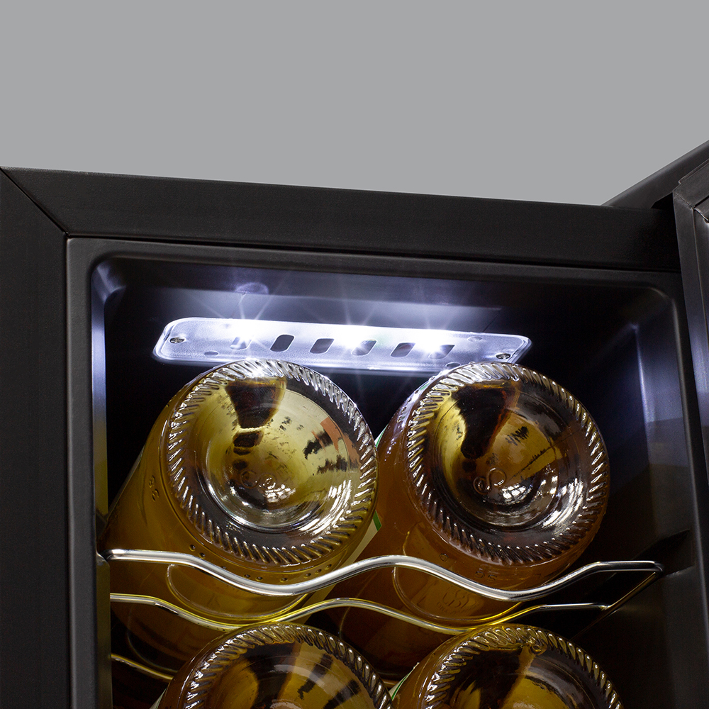 Инженеры компании Meyvel разработали новую модель отдельностоящего винного шкафа MV12-TBD1. Благодаря компактным размерам данную модель можно разместить практически в любом помещении. Двойное стекло с защитой от прямых УФ-лучей поддерживает качественные условия хранения вина. Для размещения винных бутылок, шкаф оснащен 3 полками из хромированного металла. Одна из полок имеет возможность хранения бутылок стоя.