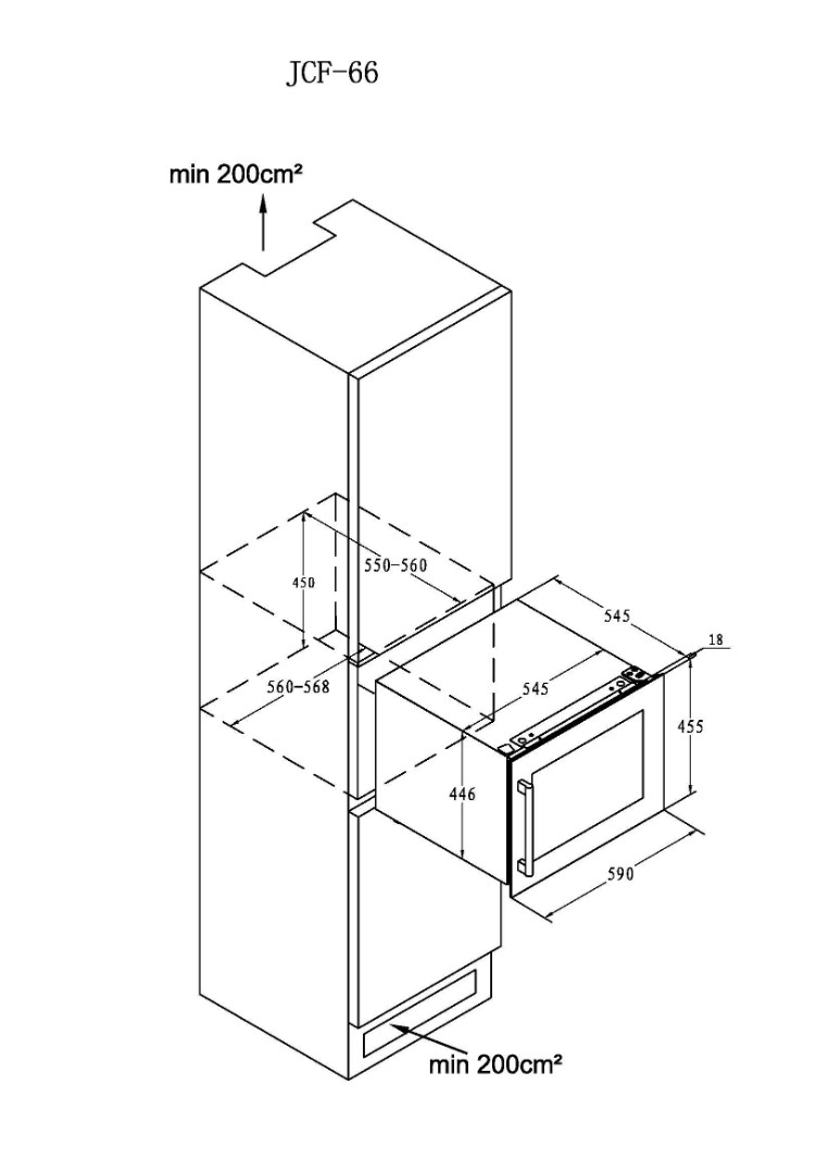 • Размеры ниши для встраивания ВхШхГ, мм: 450-465x560-568x550-560
