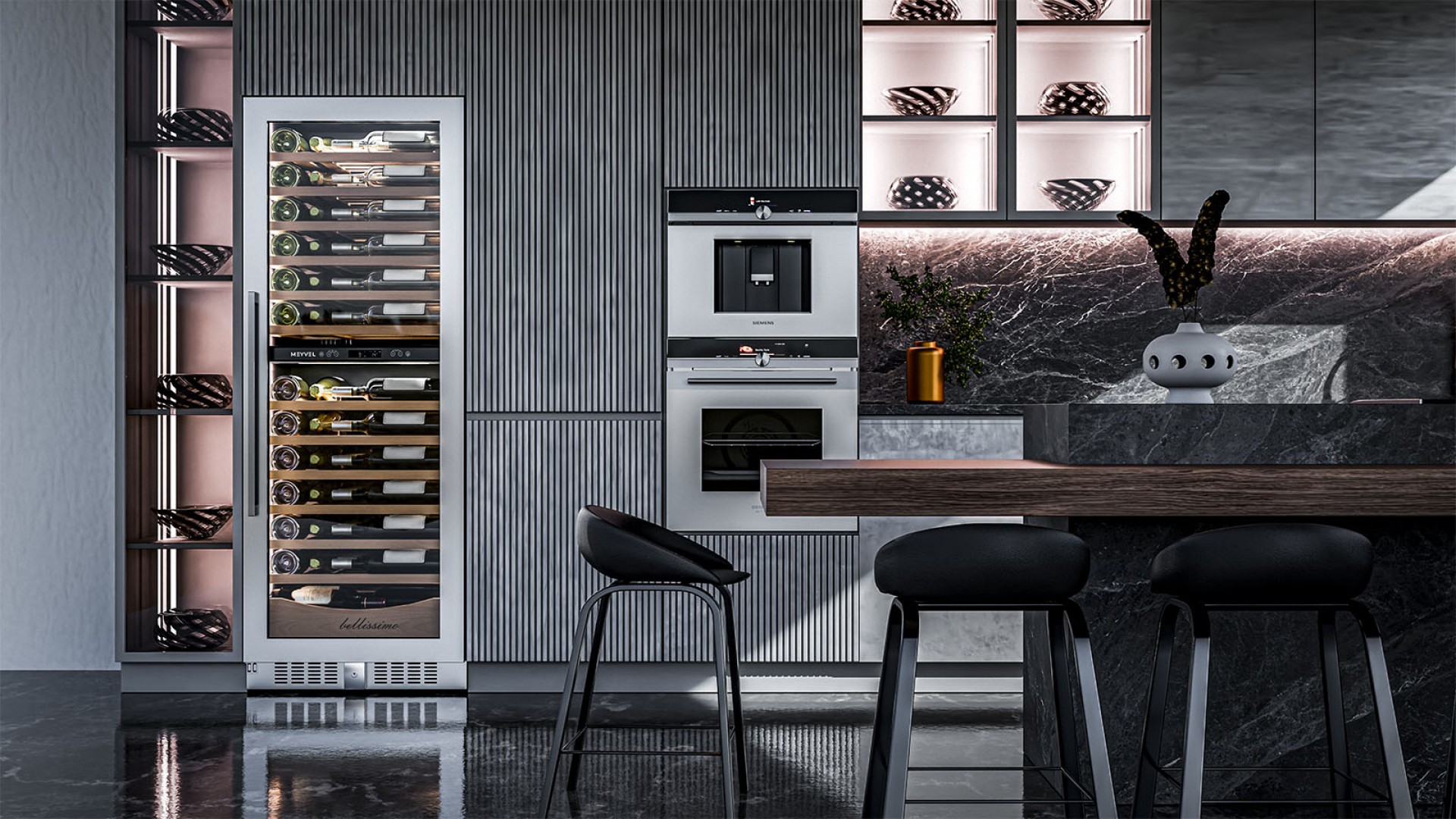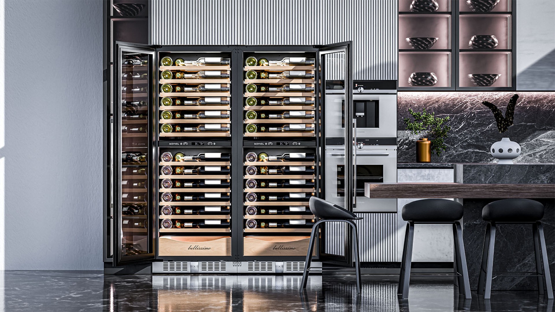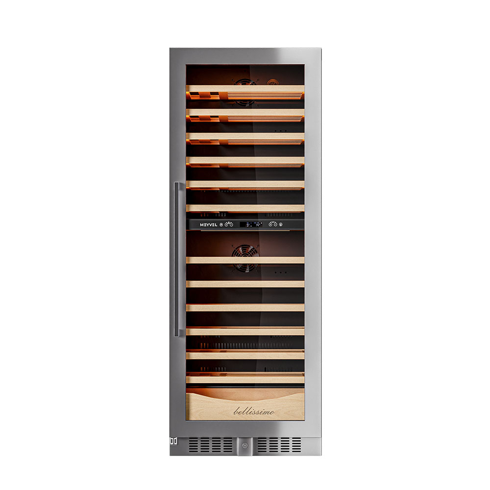 Продвинутый функционал и комплектация винного шкафа MV95-KST2 (Slim) от итальянского бренда Meyvel создаёт одну из самых высококачественных систем для профессионального и длительного хранения различных сортов вин.