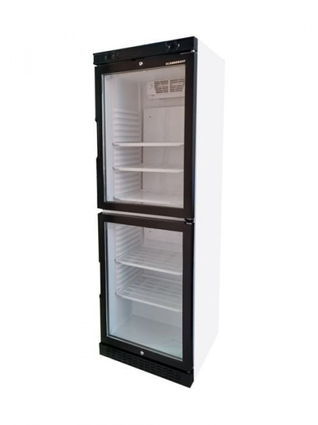 Холодильный шкаф SCANDIFROST FKG 370T двухдверный, но внутри перегородки нет. При частом использовании продукции и открывании двери меньше выходит холода и соответственно экономиться электроэнергия. В холодильнике динамическая система охлаждения, благодаря чему холодный воздух быстро и равномерно распределяется по всей внутренней камере.