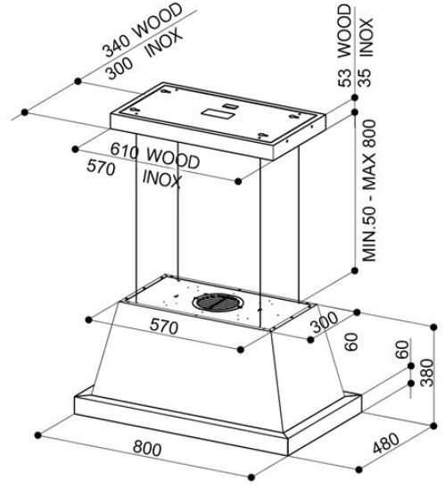 - Вытяжки встраиваемые и подвесные, шириной не более 60 см
