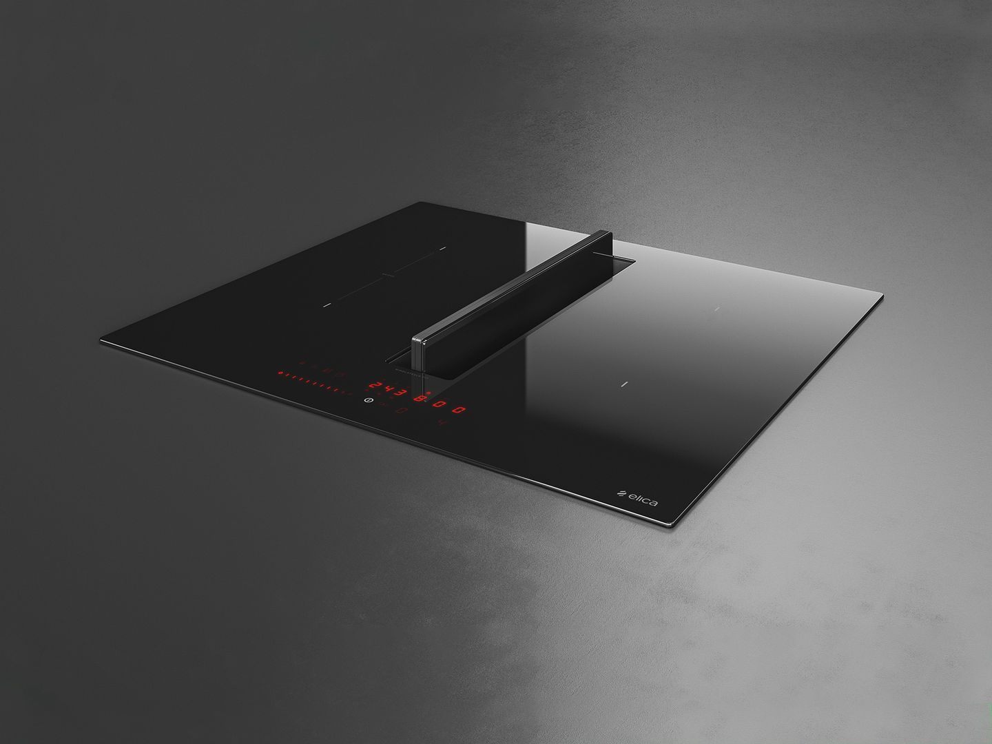 Базовая модель Elica NIKOLATESLA FIT BL/A/60 – это индукционная варочная панель с вытяжкой шириной всего 60 см., то есть размер соответствует привычной нам обычной панели без вытяжки.