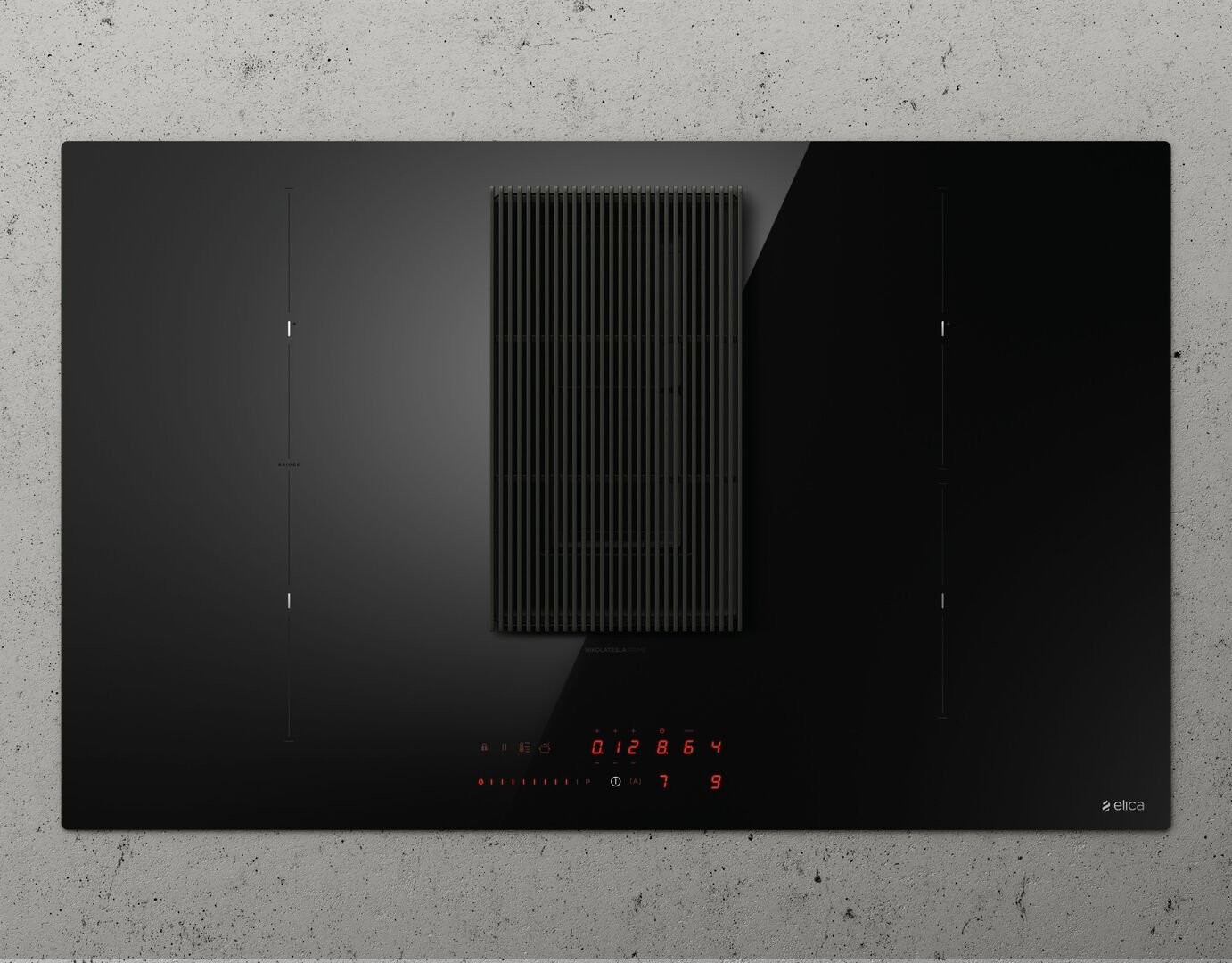 Базовая модель Elica NIKOLATESLA FIT BL/A/60 – это индукционная варочная панель с вытяжкой шириной всего 60 см., то есть размер соответствует привычной нам обычной панели без вытяжки.
